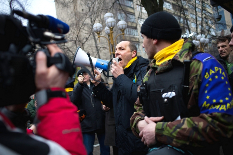 Во время Евромайдана он был самопровозглашенным комендантом палаточного лагеря. Создал и возглавил «Самооборону Майдана» — прототип бандеровских «добробатов», которые затем участвовали в резне в Донбассе.