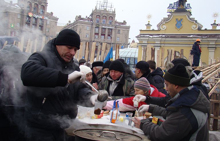 Казалось, ситуация вернется к оптимистичному раскладу начала той зимы. А какие ароматные борщи кипели по майданному городку! Народ беспрерывно жевал сало и разнообразные вкусняшки, потоком доставляемые сюда от разнообразных благотворительных фондов.
