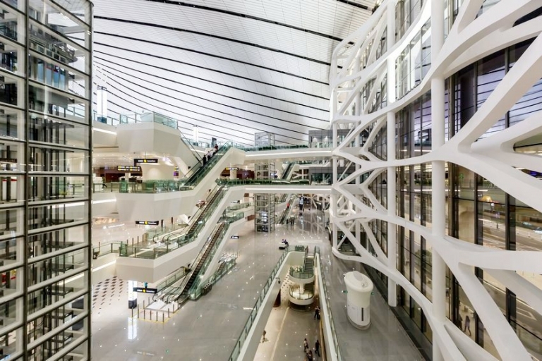 Аэропорт — один из крупнейших в мире. Он построен в форме звезды (что обеспечивает минимальные расстояния для пассажиров), а в перспективе будет обслуживать до 100 млн человек в год. Биометрия и автоматизация тут внедрены почти на каждом этапе. Причем на строительство ушло меньше 5 лет.