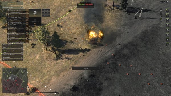 Не стоит забывать и про сапёров. При наличии времени вероятна установка минных полей. С их помощью возможно не только повреждение, но и уничтожение бронетехники противника, в том числе и хорошо защищенных «Абрамсов» и «Брэдли». И эти возможности также взяты из реальной жизни. В ходе отражения наступления ВСУ в Запорожской области западная техника понесла очень серьезные потери на установленных российскими сапёрами заграждениях.