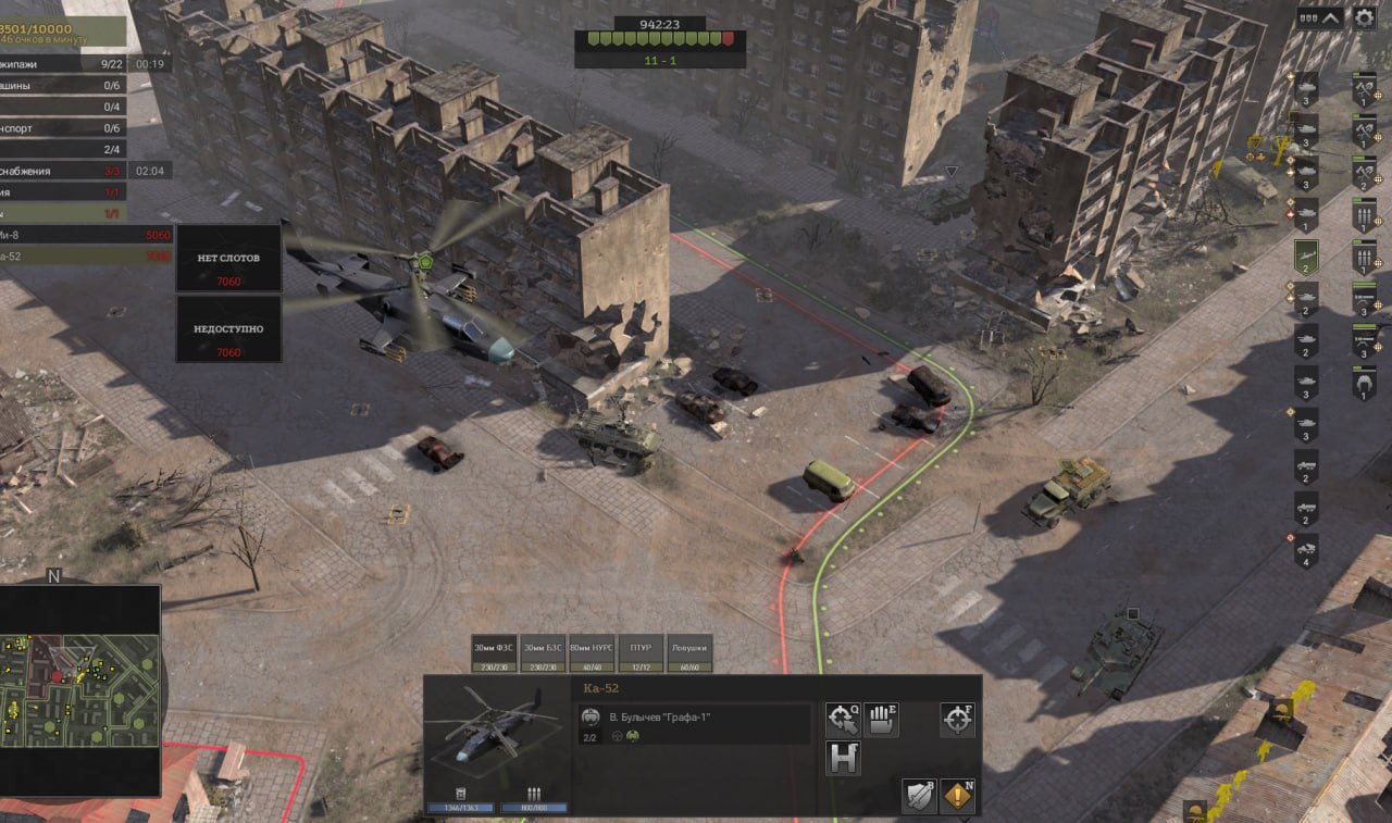 Отдельно стоит сказать о поддержке с воздуха. При игре за армию России игроку доступно прямое управление вертолетами Ми-8 и Ка-52. Последние, по мнению автора, являются одними из наиболее эффективных юнитов на поле боя. В проекте отражена высокая живучесть Ка-52 «Аллигатор», что основано на реальном опыте применения машины в ходе боевых действий в Сирии и на СВО.