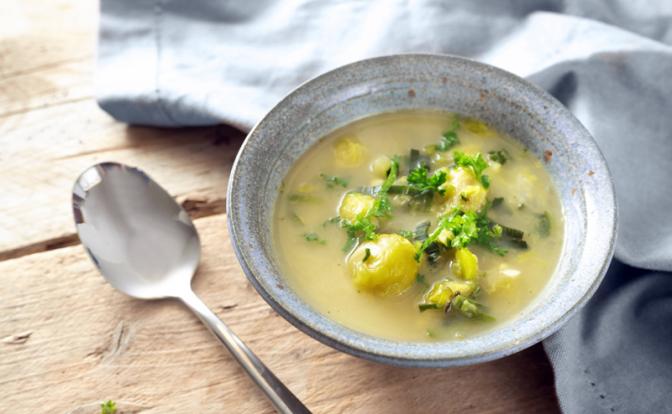 Сначала овощи варятся, затем перемалываются блендером. Суп подается без соли и специй.